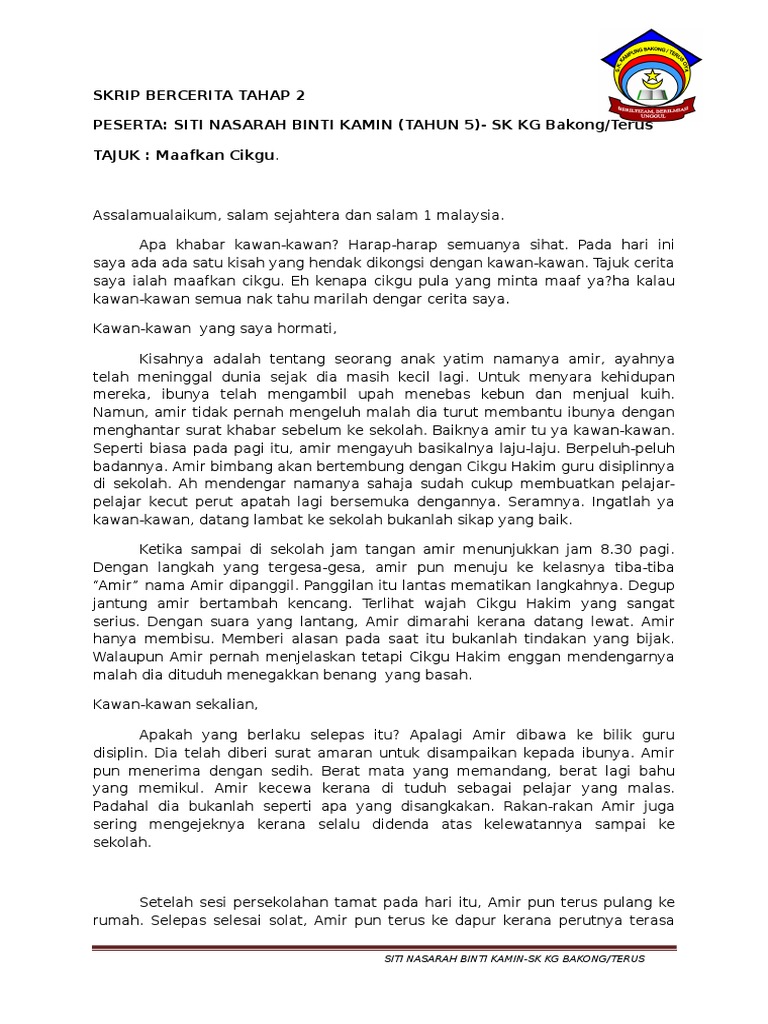 Skrip Cerita Pendek Pertandingan Bercerita Bahasa Melayu Tahap 2 - Johan Bercerita Bm Negeri Selangor 2011 Youtube. Skrip cerita pertandingan bercerita bahasa melayu tajuk cerita. Teks bercerita tahap 1 sekolah rendah 2017.